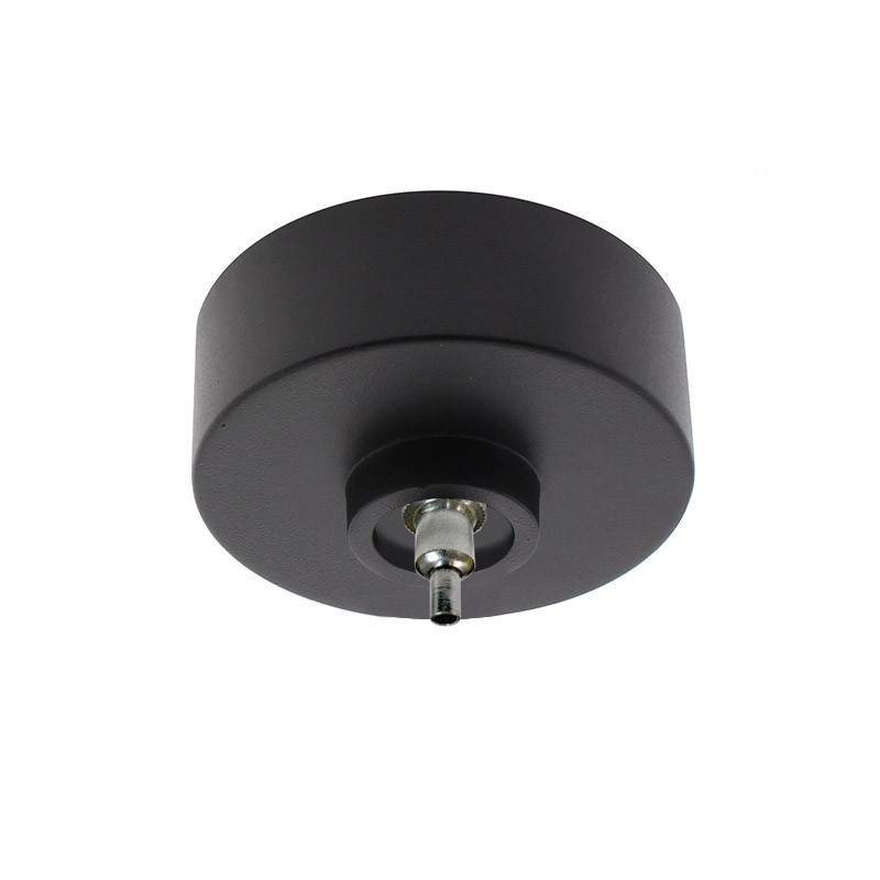 Florón redondo lacado color negro mate, Ø75x28mm. Facilita la instalación y oculta los cables de conexión de las lámparas suspendidas.