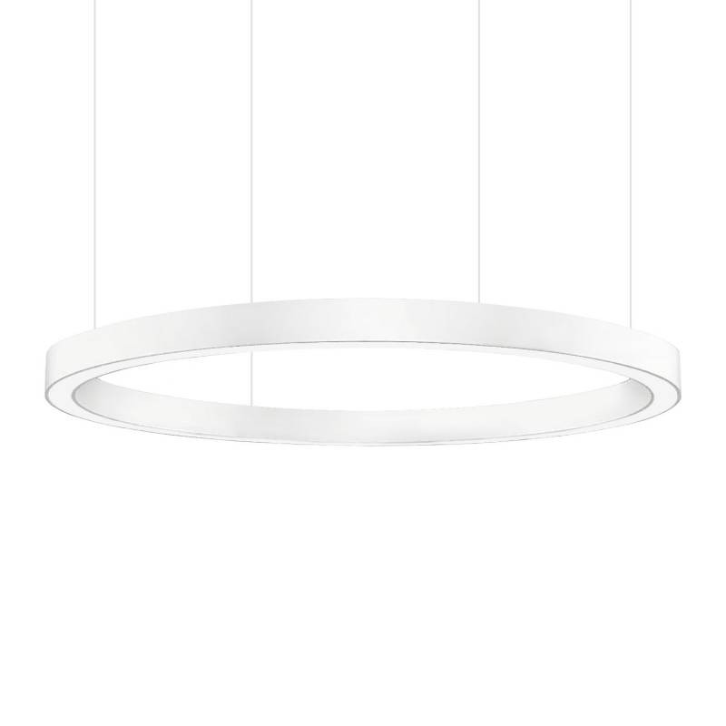 Ideal para salones modernos, oficinas, comedores, gimnasios, centros comerciales, etc. la luminaria proporciona una iluminación uniforme y sin deslumbramientos gracias a la sutil fuente de luz del interior del anillo, creando un ambiente agradable.